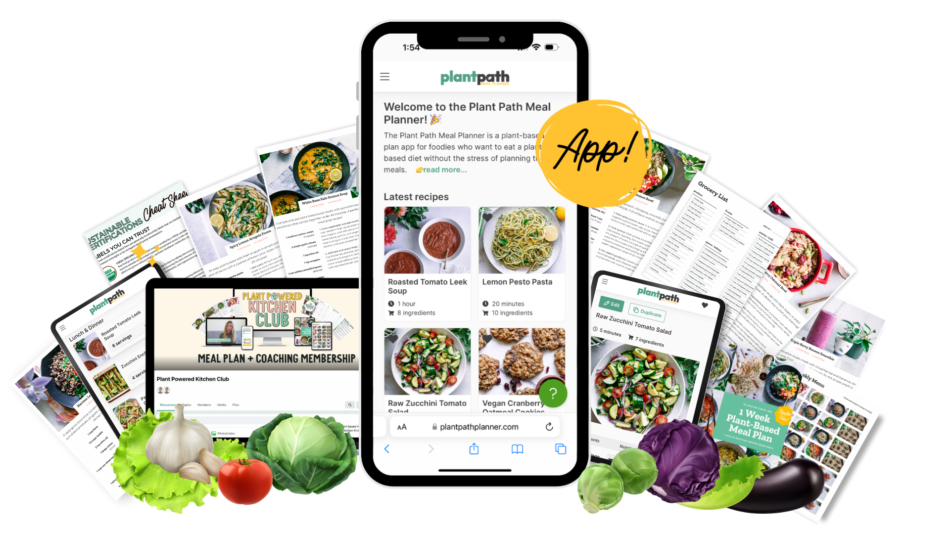 Have a plant-based meal plan and printable grocery list delivered via an exclusive app – each and every week.